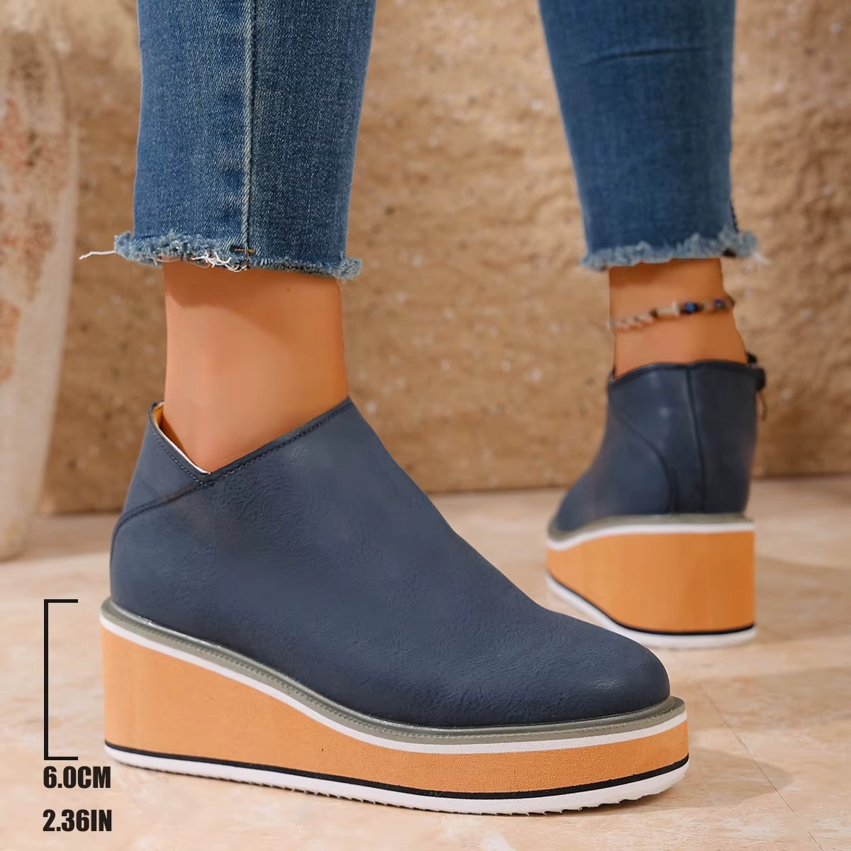 Diese Plateau-Stiefel sind mit einer gepolsterten orthopädischen Innensohle ausgestattet, die den Fuß optimal unterstützt und Druckpunkte reduziert. Perfekt für Frauen, die den ganzen Tag bequem unterwegs sein möchten